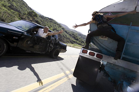 Очевидно, чтобы подстраховать дизелевскую харизму закисью азота, на "Форсаж 4" позвали Джастина Лина, постановщика "Токийского дрифта" — единственной ленты из всей франшизы, ставшей культовой среди рейсеров. Потому что Лин — именно тот человек, который может сделать нужное ВЖЖЖЖЖ, состоящее из нелегальных уличных автогонок, гонки в громадном самодельном подземном туннеле между Мексикой и Калифорнией и сцены похищения бензовоза. И парень не подвел: все будет мелькать, рычать и жужжать, закись азота польется в бак на финишной прямой, спидометр будет показывать запредельные в городском потоке 160 (миль в час, разумеется), а лучшая в фильме сцена — самая первая, с угоном бензовоза, вообще, скорее всего, войдет в киноучебники, так что не опаздывайте.